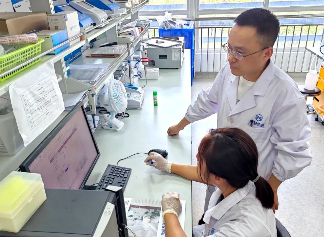 在位于二楼的实验室,研发总监李江红正带着团队攻关项目。“我们现在的重点项目是利用分子诊断进行病原微生物的快速检测,检测方向是副溶血孤菌和新布尼亚病毒。”李红江说。